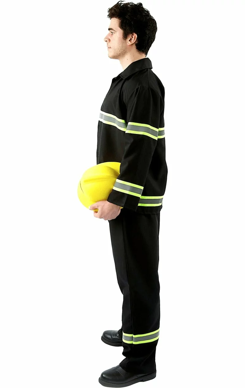 Heat up the party with the Adult Classic Fireman Costume! The costume comes with a black jacket with fluorescent strips and matching trousers.