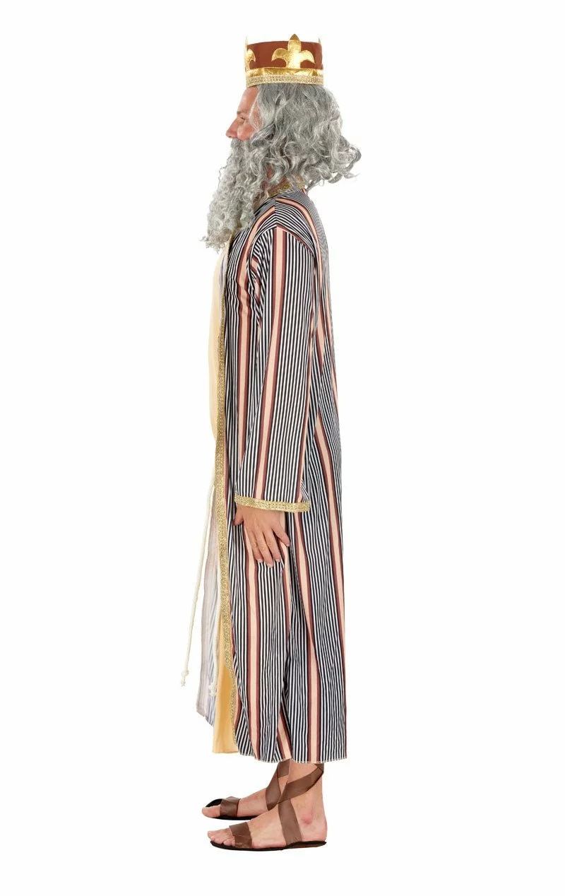 The Adult Three Wise Men Gold Costume comes complete with a floor length, bright yellow caftan, featuring a striped black, white, gold and red jacket that’s attached to the costume. The outfit is finished off with a white rope that’s tied around the waist, plus a matching crown hat, which is perfect for a noble king like yourself! If you want to go all out this festive season, then why not team it up with a beard and wig set and a pair of tan sandals?