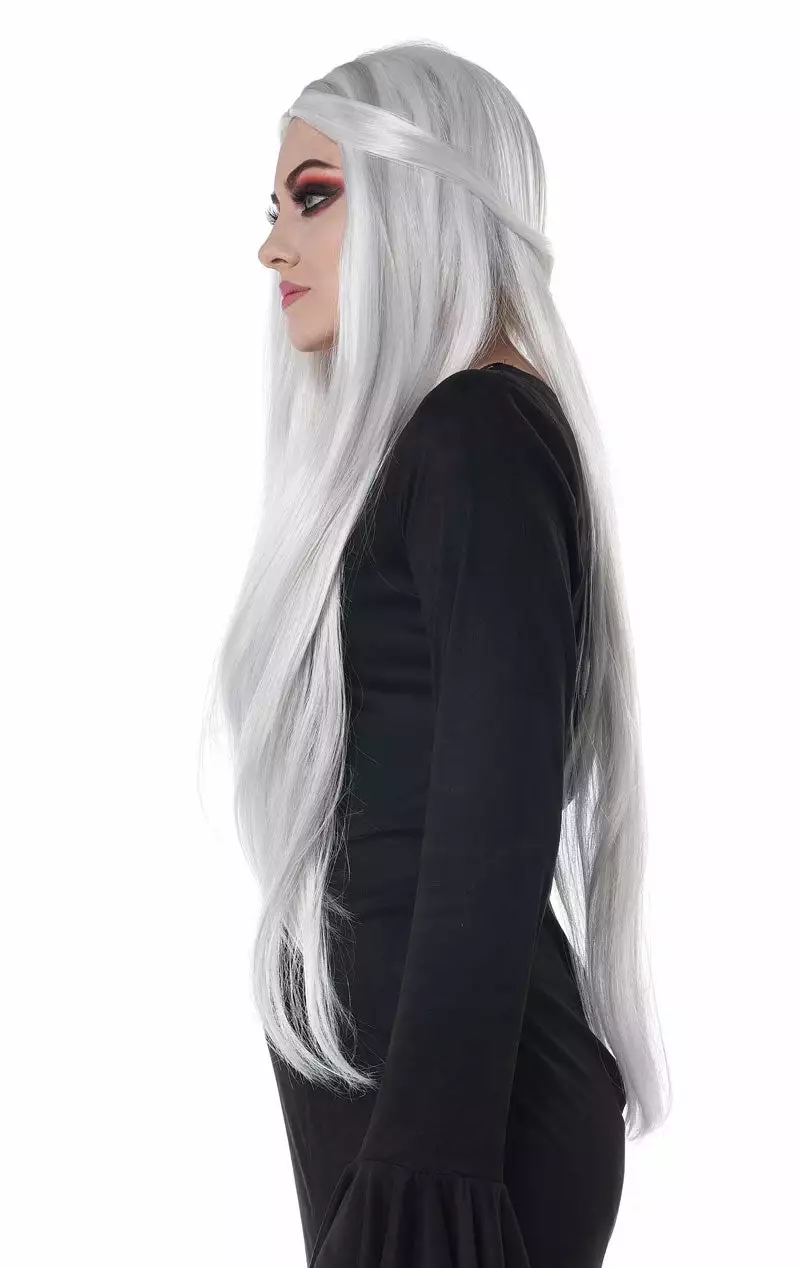 Get that heavenly look with our Womens White Extra Long Cosplay Wig and watch party goers fall at your feet. This is the perfect accessory to complete your fancy dress look, whether you choose to become a fallen angel, a glamourous ghost or an undead bride, these stunning long locks will transform your costume into a showstopping look!