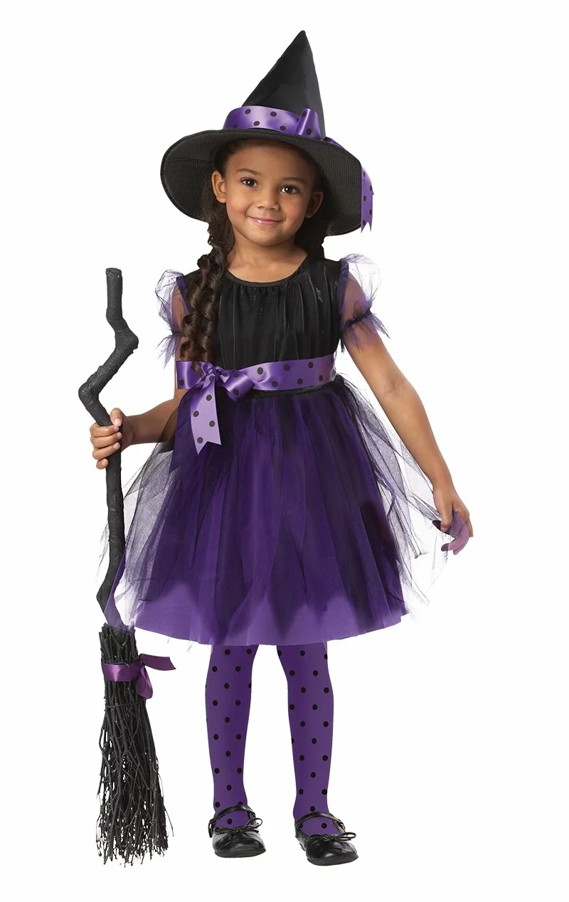 Witches have long been associated with Halloween and year after year witchesโ costumes never fail to be a top choice for little girls. Get casting those spells with this Spooktacular dress! You could even add some green face paint and a fake nose to look just like a witch.
