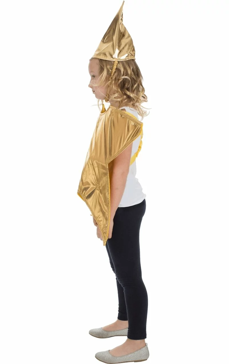 The Kids Christmas Star Costume consists of a bright gold star shaped tunic. It has two arm holes at either side where your child’s arms can sit comfortably and a radiant gold finish. The tunic features a cross back strap fastening to make it easier for your child to put on and remove.