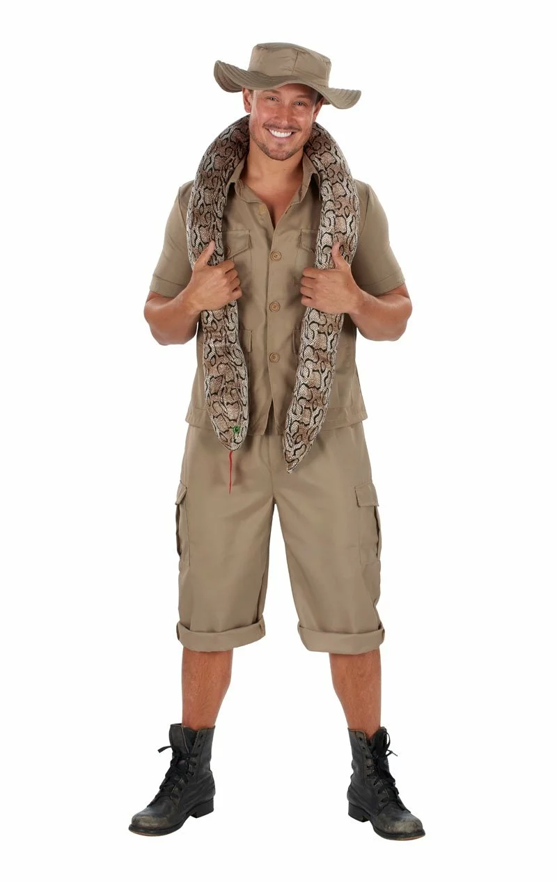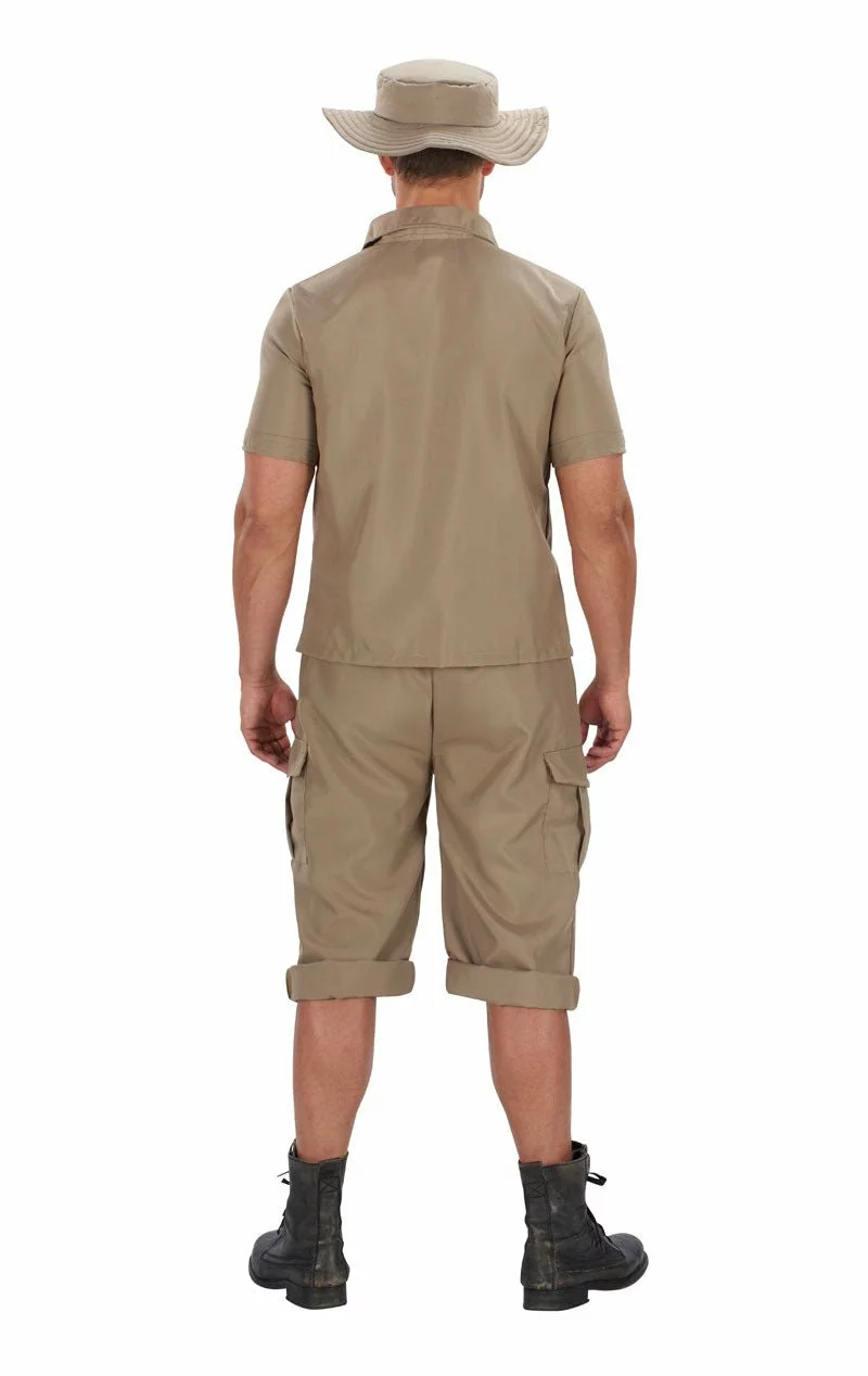 Enjoy the safari in the Adult Retro Safari Suit! This suit includes a beige jacket, matching shorts, belt and hat.