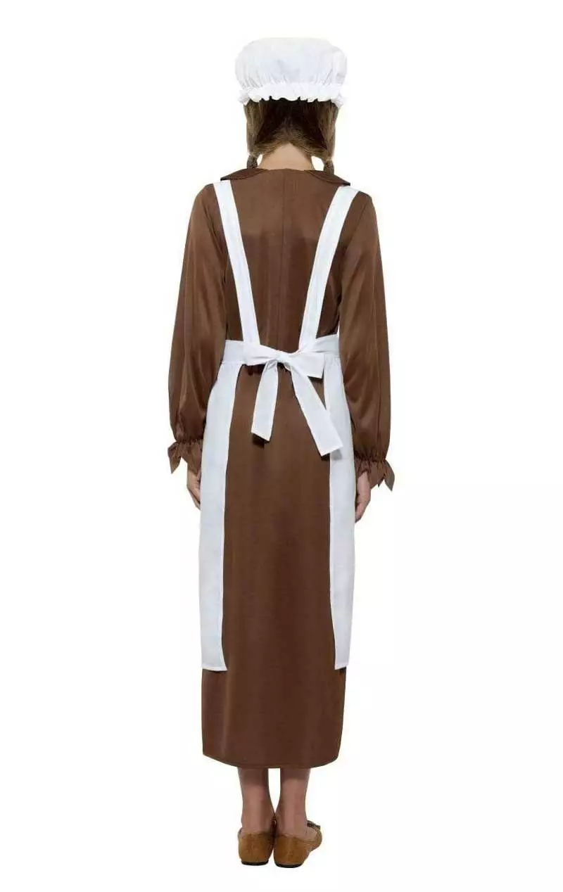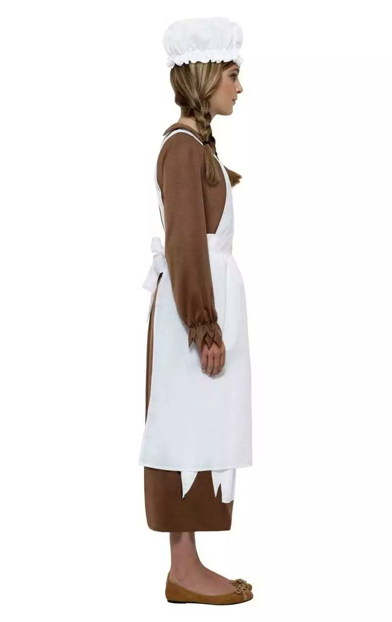 Step back in time with the Child Victorian Girl Set! The set includes a brown dress with inbuilt white apron and Victorian mop cap.